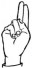 На ћирилици написано КОСТАДИН СУДАРАЦ састоји се из 15 слова [?]. Исписано ћириличном једноручном азбуком за глувонеме: